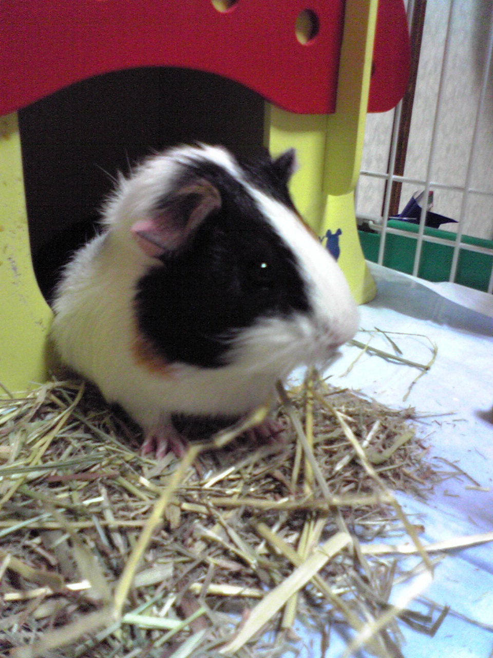 今月に入って毎日ブログってたのに、ついにネタ切れだぞ。こういう時はうちのお嬢、モルピーに登場してもらおう。うちに来た時に比べたら随分馴れてきたけど、やはりモルモットはかなりビビリ。名前を呼んだらこっちへ来てくれるくらいになれば、かなり犬猫に近くなるんだけど、名前を呼んだら大抵ビビって寝床の奥の方へ隠れてしまう。おいおい、いつも君のトイレの掃除も部屋の掃除もしてやって、毎日エサと水を換えてやってるご主人様が呼んでるんだぞぉ~?でも一旦寝床から引きずり出して膝の上に乗せると落ち着くのか、くつろいで指をペロペロ舐めにくる。そろそろモルピーの部屋の掃除の時間だ。終わったら風呂に入ってPSPでみんゴルしながら寝よっと。