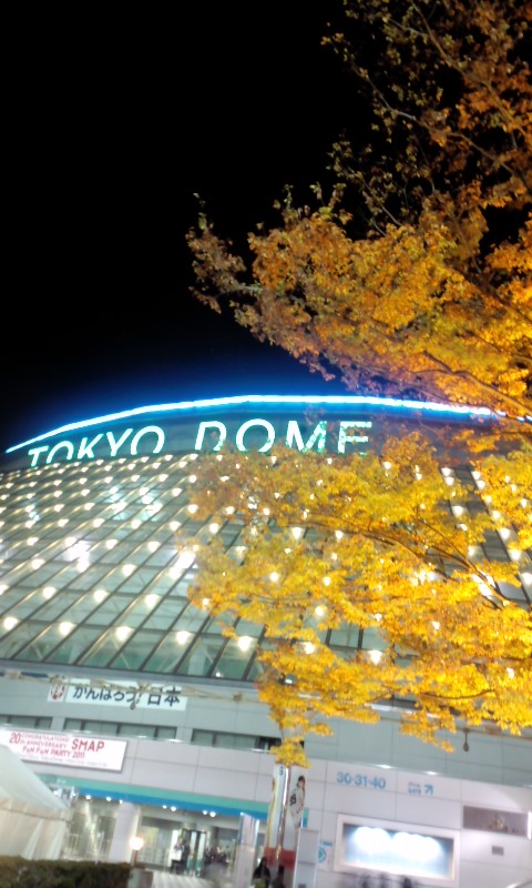東京ドームで、紅葉がライトアップされてました きれいだったな