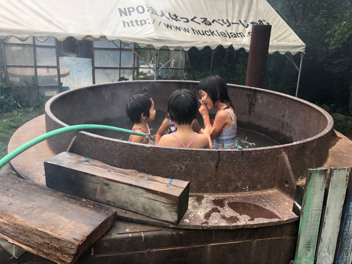 靴を履いてお風呂に入るの初めて〜なんて言いながら、うれしそうに浸かっていました。