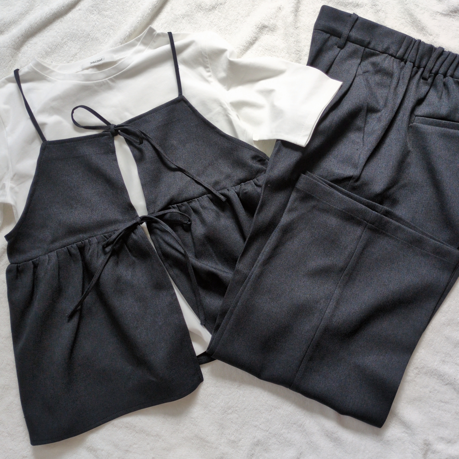 Rakuten Fashionさん購入品です♪Discoatのセットアップです3点セットになっています!めちゃくちゃ可愛い♡低身長サイズあったので、ズボンの丈も大丈夫でした^_^購入したのはブラックですが、自宅にある黒のTシャツと比較!黒なんですけど濃い黒ではない感じ。Discoat マルチウェイセットアップ ディスコート ワンピース・ドレス その他のワンピース・ドレス グレー ブラック【送料無料】