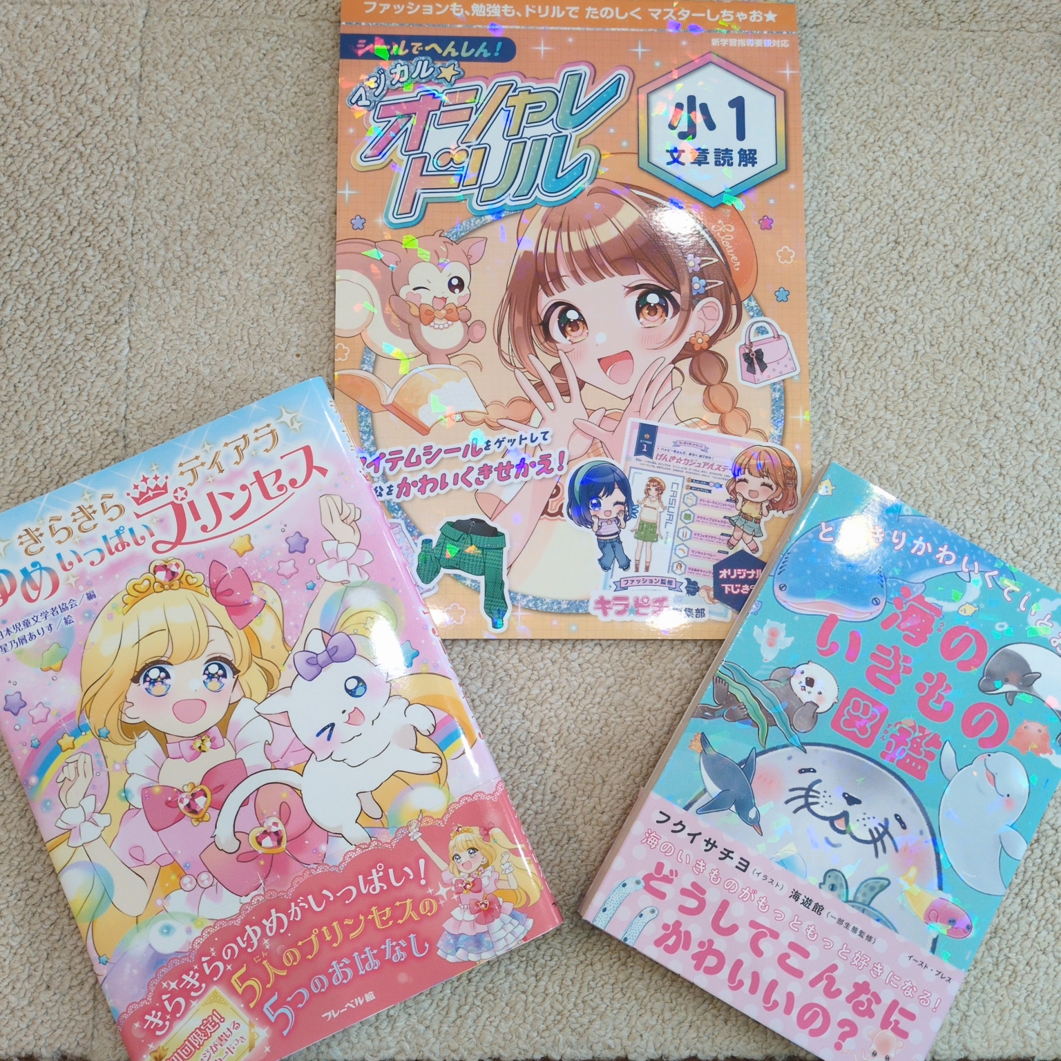 実店舗購入品です♪オシャレドリルは文章読解が発売していたので、春休みにやりました!2年生バージョンも購入したいな。シールでへんしん!マジカル☆オシャレドリル 小1文章読解 [ Gakken ]漢字とけいさんもあるよ!シールでへんしん!マジカル☆オシャレドリル 小1かん字 [ Gakken ]シールでへんしん!マジカル☆オシャレドリル 小1けいさん [ Gakken ]きらきらティアラ ゆめいっぱいプリンセス (1) [ 日本児童文学者協会 ]とびきりかわいくていとおしい 海のいきもの図鑑 [ フクイサチヨ ]