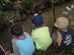 ボランティアスタッフのカブト君からの日記です。深いことが書かれていて、考えさせられます。当日の日記:「ザリガニ泥祭り」いやぁ~良かった!!かなり楽しめた!!充実した一日でした。まずはザリガニ釣り今日は釣りはやっていないけど俺流の手づかみでなんなくゲット腕は全く鈍っていません感覚が確かめられたので、釣りはせずにザリガニ釣りをする子どもの補助をやってました。補助っていっても、みんなうまいから次から次へ釣り上げる(^^)これは手軽に楽しめていい遊びです。ザリガニってつかむものだと思ってたから、スルメに食いついて離れない姿は結構おもしろかったザリガニ釣りの後は・・・一通り時間が過ぎると、釣りに飽きてくる子どももいます。その中の男の子集団にザリガニ釣りをした沼に一緒に入ろうと誘われ、泥沼の中に一緒に入って遊んじゃいました・・・(^^;)プランにはなかったのですが、自然の中では子どもがやりたいと思ったことを可能な限り実現してやりたいのが俺のポリシーです。とても一人では入れない4歳児を抱っこをして沼の中に入りましたよ。おかげでズボンは泥だらけ。しかも沼に入った足を抱っこしているときにバタバタさせるもんだからさらに状況は悪化・・まぁ仕方ありません帰りは名鉄とJRのラッシュ時に乗り込まなくちゃいけないので、さすがに泥まみれになるのは無理でしたが、正直なりたかった・・・沼にダイブしたかった・・・家がすぐ近くであれば・・・もう少し俺が小さければ・・・。着替えも持ってきてなかったので断念。これが今日の唯一の心残り。子どもたちが泥沼に入ったり、泥をかけ合う姿をお父さんのような気持ちで眺めていました。見ていたといっても一緒の沼の中だったので無事に済むわけはなく、とばっちりを受けてズボンはさらに泥まみれ、上のポロシャツも被弾し泥の斑点がついてしまいましたおかげで帰りの名鉄は泥臭かったです。服も泥着きまくりの格好で・・・ドブの匂い?みたいな香りを漂わせ、ぎゅうぎゅう詰めの列車内に。こういうときに限って着飾った名古屋嬢が俺の横に来るんですな。香水プンプンさせてましたが、俺の泥の方が強烈でしたよ。お姉さんすいませんでしたm(_ _)m野生児も電車を利用するんです。楽しい時間は本当にあっという間。今日はたくさんの子どもの声、森の声を聴いた一日でした。おかげで気分はかなりリセット完了。小さい仲間たちに感謝。森の恵みにも感謝。そしてたくさんの出会いにも感謝次の日の日記:「泥祭りの後...」昨日のねっこぼっこさんのザリガニ釣り兼泥沼祭りのその後です。足がだるいです。動きにくい沼での歩行は思った以上に老体に響いたようです。さて、今日は昨日のことで少し考えたことがあるので書きます。泥沼遊びの汚れを落とすために子どもたちは近くの水の流れる側溝に行き、体ごと側溝に入り洗っていました。まぁ案の定、水に興奮して全身が綺麗になるまで一時間以上かかりましたが(^^;)その間、様々な人が子どもたちの横を通り、なかなか見ない光景に対していろいろな反応がありました。元気に遊ぶ子どもを見て微笑んだり、話かけてきたりする人も。彼らは山にハイキングに来ている人たちで、昔は自分たちも同じように泥だらけ水浸しになったであろう世代の人たちです。通りかかった人の中には父親と息子の親子がいて、その親子だけは反応が違っていました。親子は泥だらけ、水浸しの子どもたちを明らかに避け、そして先ほどまで子どもらが暴れていた沼へ向かって何かをしていました。近づいて尋ねてみると、一匹の亀を放しています。その親は「亀を逃がしているんです」と言っていましたが、逃がしていた亀はミドリガメ。外来種の亀の幼体です。日本古来の生態系を崩してしまう恐れもある種類なので、むやみやたらに放してはいけないはずの種類なのですが・・・それも大きな問題なのですが、帰り際その人が側溝で遊んでいる子どもの親にいった言葉には呆れました。「ちゃんと調整してるんだから、ああやって子どもを遊ばせてはいけないんですよ」と一言。たしかに水の量を調整するための装置ですが、開けたところで劇的に水かさが増えるものではないし(現に水はあまり流れてはおらず、開けても一時的に増えるだけで、そこまで水は流れない)、濁った水が流れるのは雨の日と同じようになるだけです。自分は外来種の亀を放しておいて、その言葉ですか。。。。きちんとした格好を自分の子どもにさせて、とてもお利口そうに育てているようですが、俺にはあなた達の姿がとても窮屈に見えましたよ。反対に、全身をユニクロのスポーツ服で決めたショーンコネリーのようなおじさんは、側溝に入って遊ぶ子どもたちを満面の笑顔で眺めとても感心していました。おじさんは今の自然回帰みたいなブームをブームではなく、普段の生活の中で当たり前のようにしてやっていかなければならないことと言っていました。そ