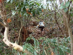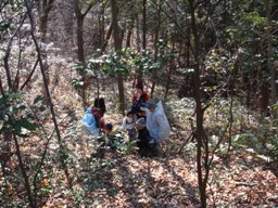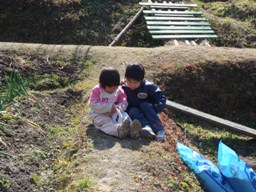 真冬の気温に戻るとの予報だったが木々に囲まれて穏やかな日差しの中、お弁当後のひととき。Nonちゃん「もうすぐリス組さんになるから、どんぐり組さんも自分でお片付けできるようにやってみよっか」弁当箱を布巾に包もうと挑戦するZe君とDa君。端と端を持って、バツにして、穴にくるっと通して、引っ張る。手順は理解しているようだが苦戦中の2人。対角ではなく隣り合う端と端を持つので弁当箱がうまく包み込めないDa君。Nonちゃんが手伝おうかと声をかけたが、自分でやってみると。何度もやってみてようやく包むことが出来た。おめでとう!お弁当箱記念日だね。「この前見つけたいいところがあるから連れてってあげる」とSiちゃん。そこは先週見つけた崖で、のぼるのに苦戦していたDa君を皆が励ましあい助け合い登りきったという心温まるエピソードの場所。今日はすでに男の子達が登っていた。Da君も上から見下ろしている。Siちゃん、崖の上の木を掴み上手に登った。最後はMiちゃんの番。昨夜の雨でか崖は足がすべりうまく登れない。でも待って、崖の上からSiちゃんが助けの手を差し伸べているよ。しかしSiちゃんを邪魔するAyu君、Ga。他の男の子達も野次を飛ばしている。Siちゃん、意地悪攻撃に負け、助けるのをあきらめてしまった。すると次にはZe君が助けに来たよ!またまた邪魔をされてZe君退散。。。Miちゃん「登れな~い」と大人に助けを求める顔。でも大人たちは温かいまなざしのみ。つらいけどMiちゃん頑張って!木の枝を掴み、膝を斜面にひっかけ、腕でよじのぼ~~~る。 やったぁ!!!最高の笑顔を見せてくれたよ。(G母)