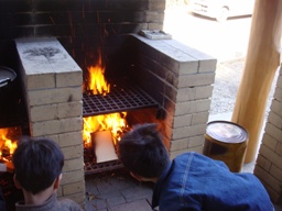 今日はお休みの子も多く、少人数の中、久しぶりのいつものメニューのご飯とお味噌汁。朝の会で、いつものように「僕、火はやらないよ~~。」と言っていた年長児GA君。結局このままGA君は火に対して苦手意識を持ったまま卒園になってしまうのかなぁ?とさみしくは思ったけれど、それもしょうがないのかもしれない。無理強いするのはよくない…と思い、朝の会を終えました。さあ、今日は、3つの炉で火を熾すよ~~。というと、一つの炉には、MAちゃん、RYO。もう一つの炉にはSIちゃん、MIちゃん。そして、あと一つの炉には…GA君が。NONは一瞬、「えっっ!?」と思ったけれど、それを口には出さないでおきました。にじみ絵をしている時もGA君は、大人の一言にとても敏感に反応してしまい、「もう、や~~めた!!」ということがありました。何も言わずに見ていると、木をしっかり組み上げているのです!横で見ていたMAちゃんは、「GA、それすごいね~~!!」と感心。GA君もまんざらではなさそうなので、私も何気な~くそばに行き「それ誰に教えてもらったの??」と聞くと、「パパ!!」とうれしそうに答えてくれました。下に引いた葉っぱに火をつけていくのですが、なぜかうまく火がつかない。隣ではMAちゃん達の炉も、SIちゃん達の炉も徐々につき始めているのですが・・・。焦り始めたGA君。私も、今日はなんとか彼には自信を持ってほしいと思い、「もしかして、葉っぱ湿ってるのかもね~」と声をかけました。すると、見られていることに気付いたGA君は、マッチを放り投げて、「もうや~~めた!!」と走って行ってしまいました。またまた私は自己嫌悪…。なんで、声をかけてしまったのだろう…。GA君のやる気を削いでしまった…と思っていると、山のほうからいっっぱい葉っぱを抱えたGA君がやってきてさっきまで火を熾していた炉に入れていました。GA君のやる気や、成長に、とても感動しつつ保育当番のみんなでそっと後ろから見守っていました。しばらくすると、GA君のほうから、「見てみて~~!!」とうれしそうに声をかけてくれました。その炉には、火がごうごうとついています。その炉のそばには、GA君の誇らしげな顔!!その嬉しい時に、大人も一緒に共有させてくれようと、声をかけてくれたGAくん。「すごいね~~!!」とさらりとは言ったけれど、心の中で、どうしようもないくらい感動をしていました。嫌がるかな?と思いつつ、「この火をお母さんにも見せてあげたいから、写真撮ってもいいかな?」と聞くと、なにも迷いもなく、「いいよ!!」と言ってくれました。いつも自信のなさそうだったGA君。カメラを向けると、「うえ~~~いやだよ~~!」と逃げていくGA君。縄跳びを作った時からずいぶん変わってきたなぁと思っていたのですが、また今日も一つ成長して自信に満ちた顔。ごうごうと火が燃えているので、太い角材を入れても、楽しいくらいにそれがエネルギーとなりもっと火は大きくっていきます。長い時間かけて火熾しができたGA君。もっともっと楽しませてあげたいけれど…。「そろそろ、角材がもったいないよ~、」と声をかけると、「チェ~~ッッ」とつまらなさそう。そこで、SUGIさんが「自分で集めてきなよ」と声をかけると、またまたうれしそうに森の中に入って行きました。確かに、森にはたくさんの材料があるもんね。角材があると、私もそれに頼っていたことを反省しつつ・・。火熾しを充分に楽しんだ後、みんなで遊んでいる姿には、いつものクールさは全くなく、体いっぱい笑っているGA君の姿がそこにはありました。やらされるでもなく、自分から熾した火。見守るってとっても難しいし、まだまだしっかりできているとは思えないけれど、それでもGA君は自分でやりとげました。迎えに来たお母さんにそのことを伝えると、「春までの一日一日を踏みしめていってる感じだよね。」とおっしゃっていました。GA君の火熾しをいつも近くで心配していたTOMOちゃん。今日はお休みでそれが見られなかったけれど、どうしてもそれが伝えたくて、報告の電話をしたら、本当に喜んでくださいました。少人数の保育で、一人ひとりの成長が、みんなにとってうれしい出来事。こんなねっこぼっこに関わることができて、本当に幸せだなぁ…と思いました。(NON)