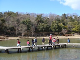 昨日とは打って変わって、お日様がちらほら覗くけど、厳しい冬の寒さの戻った今日。風はとても冷たい。 朝の会でNonちゃんが今日はどこに行く?と聞くと、「○○○!」という答えに、全員大きな声とともに手を挙げた。みんなリュックを背負って、揃って歩き始めた。女の子仲良し3人組Siちゃん、Miwちゃん、Yun。その他の男の子たちは、数人で集まったり、一人になったりしながら進む。それぞれはばらばらのことをしていても、なんだか以前よりも、全体がまとまっている感じがする。 民家の合間では、道行く人と言葉を交わしたり、池に泳ぐ巨大な鯉をしばし眺めたりしながら目的地に到着。広い敷地内で、この道を行くか、あっちの道を行くか、意見が別れかけたけど、結局みんな一緒に、同じところを目指すことになった。鳥や、馬や、うさぎなどの動物がいる場所に着くと、みんな思い思いに檻の中の動物を見る。私はここに来るといつも「うずら」の姿に癒される。でも、地味なのか、誰もうずらには興味を示さず。。。 木の柵に寄りかかってをポニーを見ながら仲良くおしゃべりしているYunとRyo君の二人の背中がとても微笑ましく、でもデート中のようにも見えて、その姿を見る親の私は複雑な気持ちになりました。 動物たちの近くの芝生でお弁当タイム。いつもはお迎えの早い水曜日は10時半頃にお弁当タイムだそう。でも、今日はもう11時半すぎ。風が吹き抜けるので、みんな寒い寒いと震えながらも、たくさん歩いてお腹がすいたのか、よく食べたね。 その後、帰りは、先頭集団がたたた~っと行ってしまい、私はDaとAyu君、ShiちゃんとNanちゃんとでゆっくり歩く。 お迎えの場所に到着すると、もうお母さんたちが来ていて、今日は帰りの会なしでそのまま終了となった。今日も本当に、みんなたくさん歩いたね。(ヤマルダ夫人)