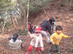 今日は久しぶりのお散歩の森ひろば。朝のご挨拶はみんな上手にしてくれます。久々に来てくれたKAN君は、いろんな子の分までお返事をしてくれるほどの張り切りを見せてくれました。冬で葉っぱが落ちている樹も多いため、鳥さんたちが見られるかしら・・?池沿いを歩いて行くと、NONの先を走っていたKO君がとてもいい場所発見!!落ち葉がふわふわしていて落ち葉のすべりだい。普段、公園の遊具では「怖いよ~」と言ってなかなか遊べない…と言っていたMI君のお母さん。でもでも、MI君は、結構急な斜面もなんのその!楽しそうに登っていっていました。MIR君も、お母さんと随分高いところまで登ったね。お母さんとおそるおそるすべっていたAKちゃん。その子そのこのペースで遊んでいました。だっこ組のRYU君親子たちはまだ来ていないぞ??あれれ?とおもっていたら、後からゆっくりゆっくりお話ししながら楽しそうにお散歩をされていました。子どもたちだけでなく、お母さん方も和やかな雰囲気に、NONも、心がホカホカしてきました。 当初の予定では、もう少し先まで行く予定でしたが、予定変更!!今日はここでお弁当にしましょう。と、シートを敷いて、先に着いた子たちからお弁当タイムになりました。すると・・!反対側からよ~~く知った顔が!!あらら!ねっこぼっこのみんなが遠い道のりを歩いて森ひろばのみんなに会いに来てくれました。うれしいビックリは大歓迎だよ!!ねっこぼっこのみんなも、その場所でお弁当。森ひろばのお母さん方も、ねっこぼっこのみんなと遊んでくださいました。そして。今日は3月3日。お雛さま。お弁当を食べている時、SUGIさんが、とっても素敵なおだいりさまとお雛さまを作ってくださいました。素材をその場所で調達してぱぱっと作ってしまうところがすごい!!松ぼっくりや、葉っぱや、松の葉で、とても素敵に仕上がりました。それを見ながら、桜餅を食べました。今日は、TOMOちゃんも、TAKAちゃんもいない森ひろばで、最初とっても緊張していましたが、やっぱり、皆さんの温かい雰囲気や、和やかなムードであっという間にそんな緊張も取れていました。今年度は、NONはおしまいですが、来年度もまた、よろしくお願いいたします。NON