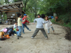 延期になっていた栗遠足。みんな楽しみにしていた。でも今日は雨。大丈夫かな~?最近まじめに(?)保育当番をやっていると、短くも長い時間の中で見る子どもの様子が本当におもしろい。朝おかあさんと分かれる時は悲しくてタオルをかじっていたDa君。しばらく遊んだ後はお弁当を間食し、おちゃらけた表情でお話してくれる。屋根の下のおままごとには入らずにひとり雨の中お散歩に行きたがっていたYuz君。1度行ったら満足したのか、2度目は行かないと言っていたのに、Ayu君に「Yuzが行くなら行く」と言われて行ってくれた。やさしくて頼りになる皆のお兄さん。女の子とおままごとの泥棒役をしていた時は恥かしそうだったAyu君。2度目の栗拾いに行く時は、小さい子の並ぶ順番を指示して先導役をしっかり務めてくれた。かねてからの念願の栗拾いにウキウキ気分で行けたZe君。落ちている栗が全然無くみんなすぐに戻っちゃったけど、その先にある空の割れ栗をこの目で確認するまで納得がいかない。そのこだわりがビンビン伝わる「一緒に見よう」の声が私は忘れられない。大きい組さんが栗の下見に行っている間に、お弁当の入ったみんなのリュックを運ぶ事になって、おねえとAmeちゃんのリュックをSiちゃんが3段背負い、AyuのリュックをZeが、YuzのリュックをShuが、奪い合うように運んでいるのを真似て、Noちゃんのリュックを小さな小さなYunちゃんが。長い階段を放り出すことなく運んでくれたよ。次はどんな姿を見せてくれるか、当番の日が待ち遠しい今日このごろです。(RE)