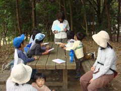 森ひろば後期がスタートしました。なんだか前期最終日から、ずいぶん時間が経ってるような気がする。久しぶりに会った子ども達、それぞれみんな大きくなったね!新しいお友達を迎えて、朝の会。お名前を呼ばれても、お返事するのはちょっと恥ずかしい。元気に、「はーい」って言えた子もいたね。森の中をお散歩して、思い思いに楽しみました。枝を拾って振り回してる。何度も何度もブロック渡り。どんぐりを拾ったり、葉っぱを取ったり。お母さんと手をつないで、ズンズンズンズン歩いて行くよ。池を渡る風が心地いい。反対側のお山がとってもきれい。緑や茶色の葉っぱ達。自然の中はやっぱり気持ちいいなぁ。この日は暑かったから体力を消耗したと思うのに子ども達は元気に遊んだね~。お父さん、お母さん、お疲れさまでした。お弁当の後、絵本の時間。子ども達のアイドル、「ぐりとぐら」の登場です。ちょっとお話が長かったかな。最後まで聞いてくれてありがとう。さよならの歌の後、お父さんお母さん達に少しお話を聞いていただきました。森ひろばをどんな場所にしたいかねっこぼっこで大切にしていることお子さんを待って欲しいことそして、大事な安全マニュアル。イマイチ説得力に欠ける私の話を、皆さんじっくり聞いてくださいました。ありがとうございました。これから半年間、一緒に森を楽しみたいと思います。どうぞよろしくお願いします。(おすぎ)