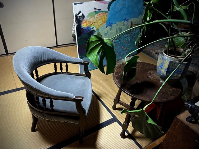 宣伝会議関西支社、西天満昭和ビルにあった。老松町と裁判所西側の通りがクロスする角っこ。そこでこの椅子に出会って。南森町と空心町の真ん中ぐらいにあった杉原さんという椅子張替え屋さんのご夫婦が面倒をみてくれていて。2回張り直してもらった。コピーライターの卵だった人たち、ライター、アドマン、編集者、小説家なんかが事務所にやって来ては雑談をしていった。そんな椅子が今 ここに。堂島、電通近くのビルに移った時に新品の調度に置き換わった、その時に貰い受け、モーニングカンパニーにやって来て、北堀江を転々とし、京都に来てからは洛東教会、ギャラリーモーニング、そして今、家に居るなんだか長い付き合いになる。なんだか畳の上は似合っていなくて。馴染むかな〜。もう少し一緒にいることに・・・#morning #kikkan #OxygenSharingEquality #酸素消費の平等 #kyotolife #ありふれたのしいいひ・雨の音と共に夜が更けてゆきます。座ってます。なんだか昭和です。