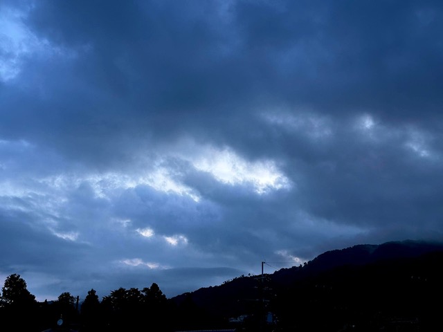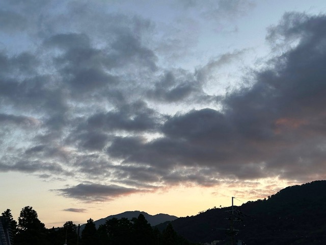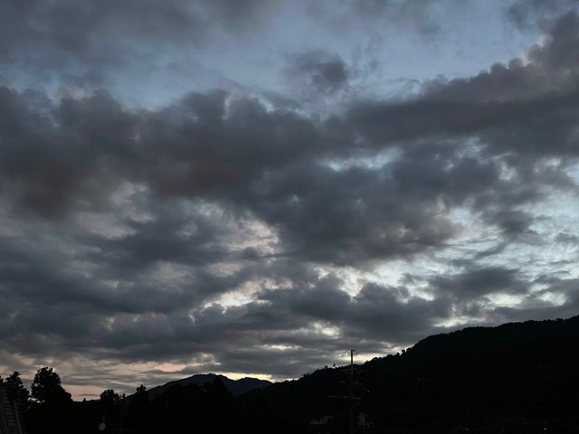 降っていたみたいで幻想を作り出していたブルーの雲 夜が溶けはじめて 暗さの雲が山に吸い込まれてゆく鳥が渡る低い雲が離れてゆき・・・#morning #kikkan #OxygenSharingEquality #酸素消費の平等 #kyotolife #ありふれたのしいいひそしておはようさん