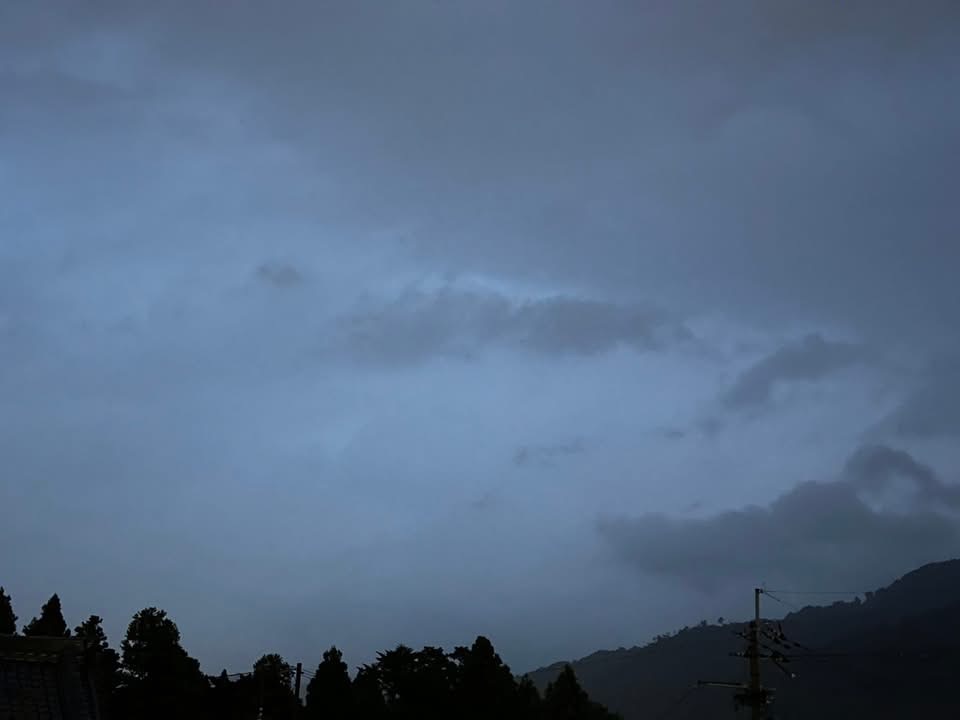 豪雨。真上に雷様中京区で100ミリ一挙に温度下がる木代さんのアトリエにてただただ待つ。太陽傾くと共に雷鳴おさまり雨上がる・・・#morning #kikkan #OxygenSharingEquality #酸素消費の平等 #kyotolife #ありふれたのしいいひ涼しい