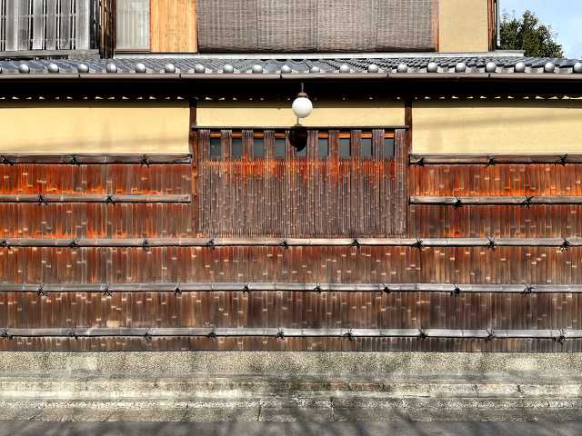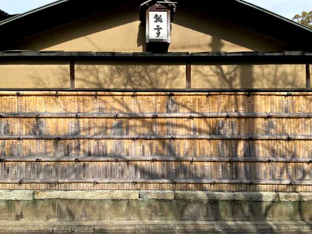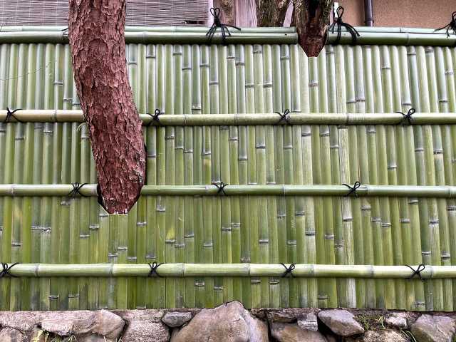 今日、前を通った400年続く老舗「瓢亭」さん。竹垣が新しくなった。