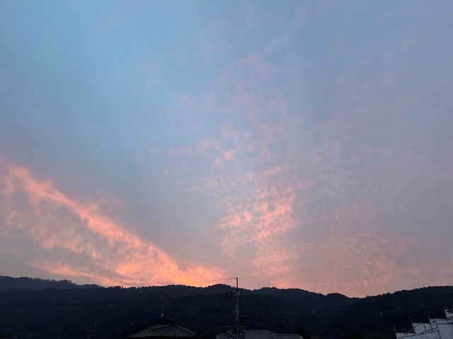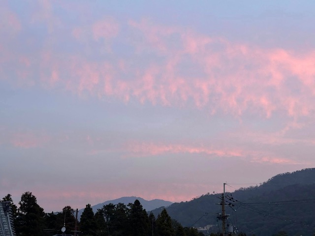 朝焼けの雲は、そんな高速の動きとは別にやわらかにたなびいていて