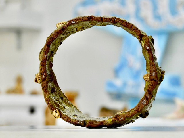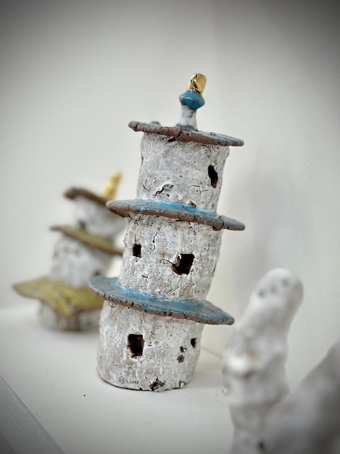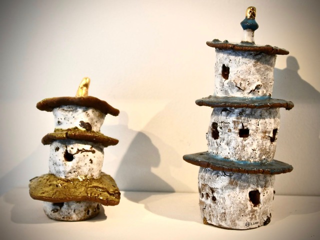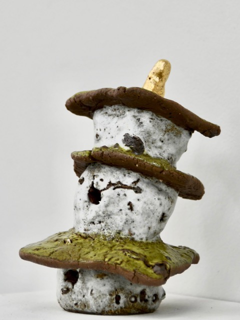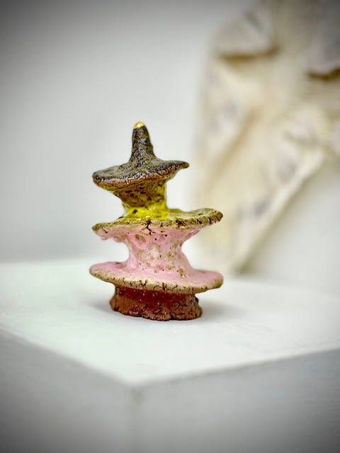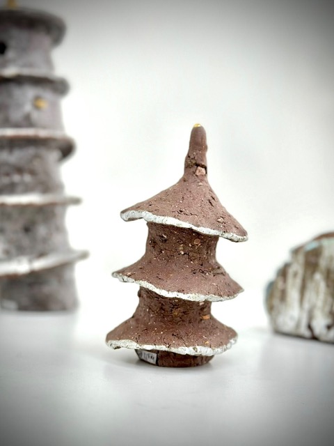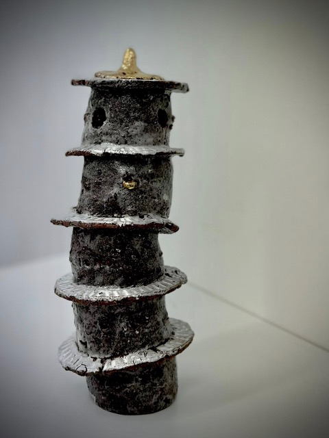 永観堂近くの地中から出た粘土そのままに捻り塔を積む。1230度小石ハジケ窯中でバランス揺れつそこに立つ