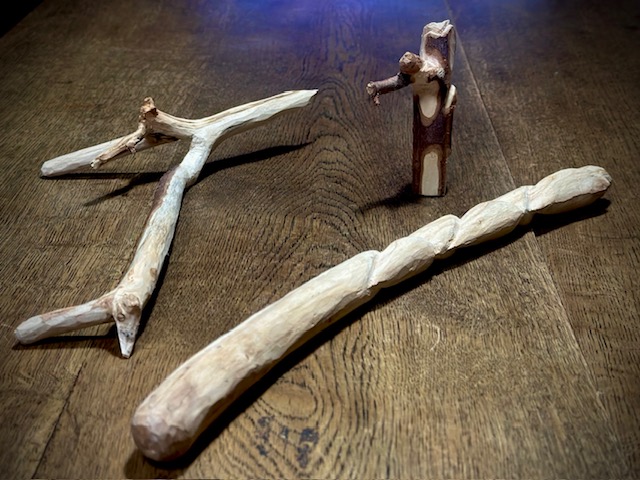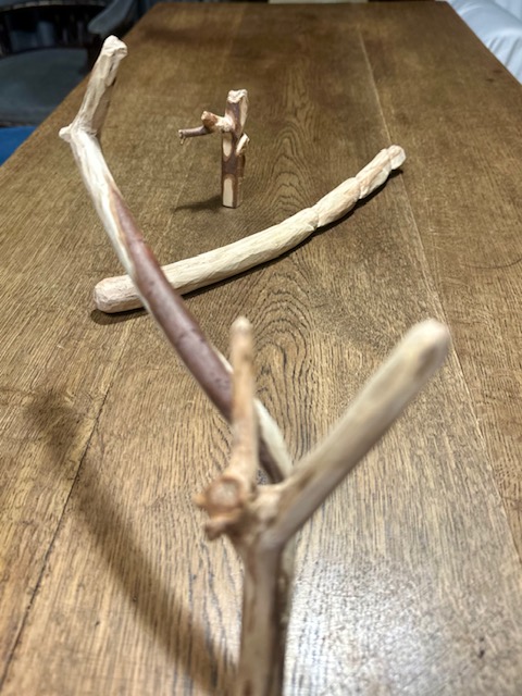 ネコヤナギの枝。元伊勢瀧原宮道の駅で切り花を買って地植えにしたら大きくなって、詰めた剪定の切れ端。いい具合に乾いて