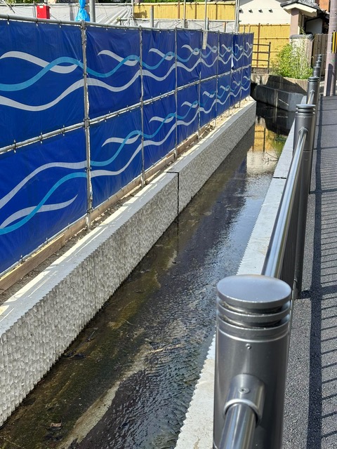 ガードマンは「お気をつけて」と誘導してくれる。マンション工事が始まった。まず、小草川が整備された。コンクリートだ。沢蟹も鴨の番も、梶木も桐も