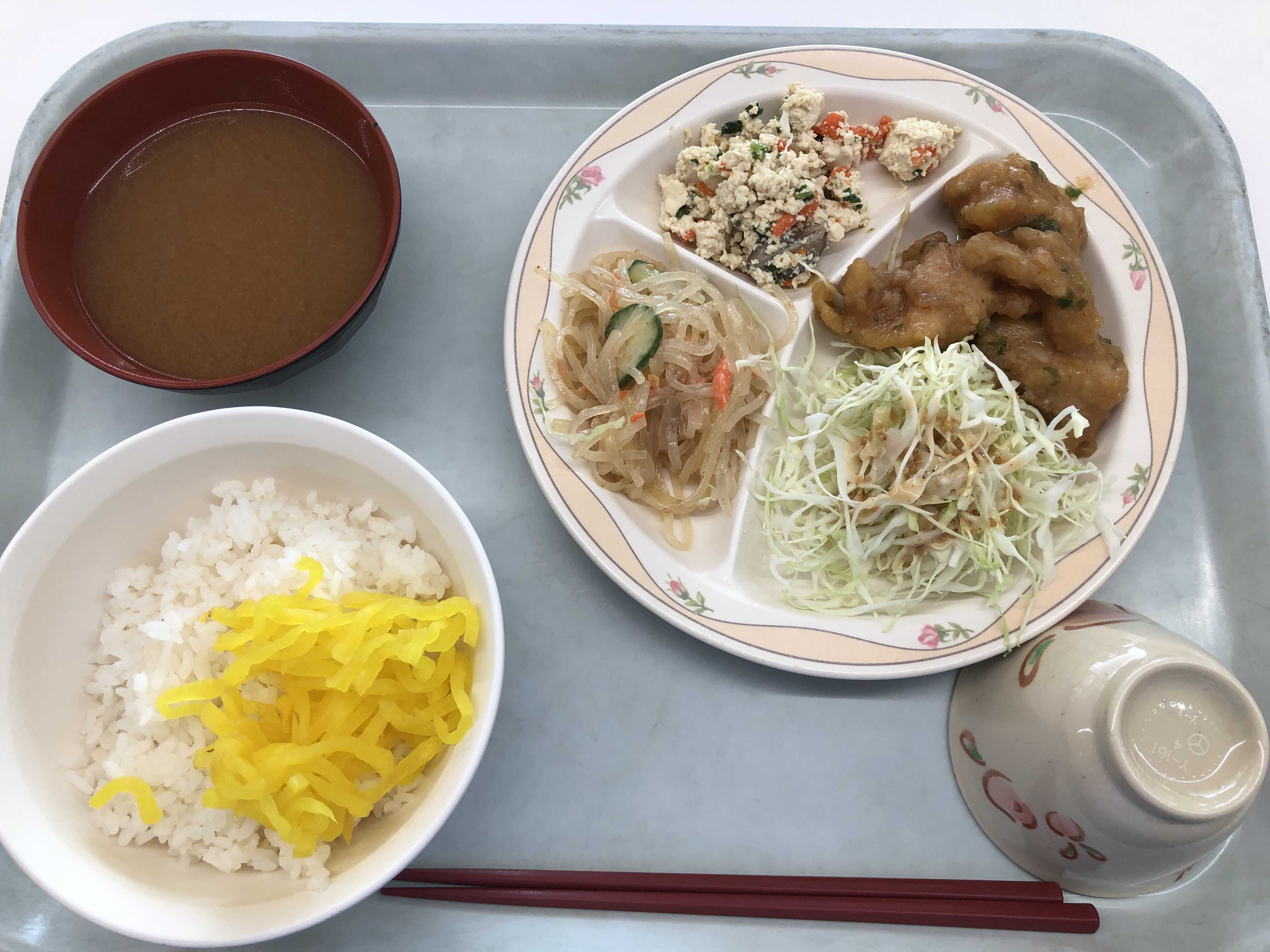 職場の食堂ランチ。毎日4種類の中から予約無く好きなものを選べます。本日、私が選んだのはコチラ!👇🏻ご馳走様でした(人 'ч'。)
