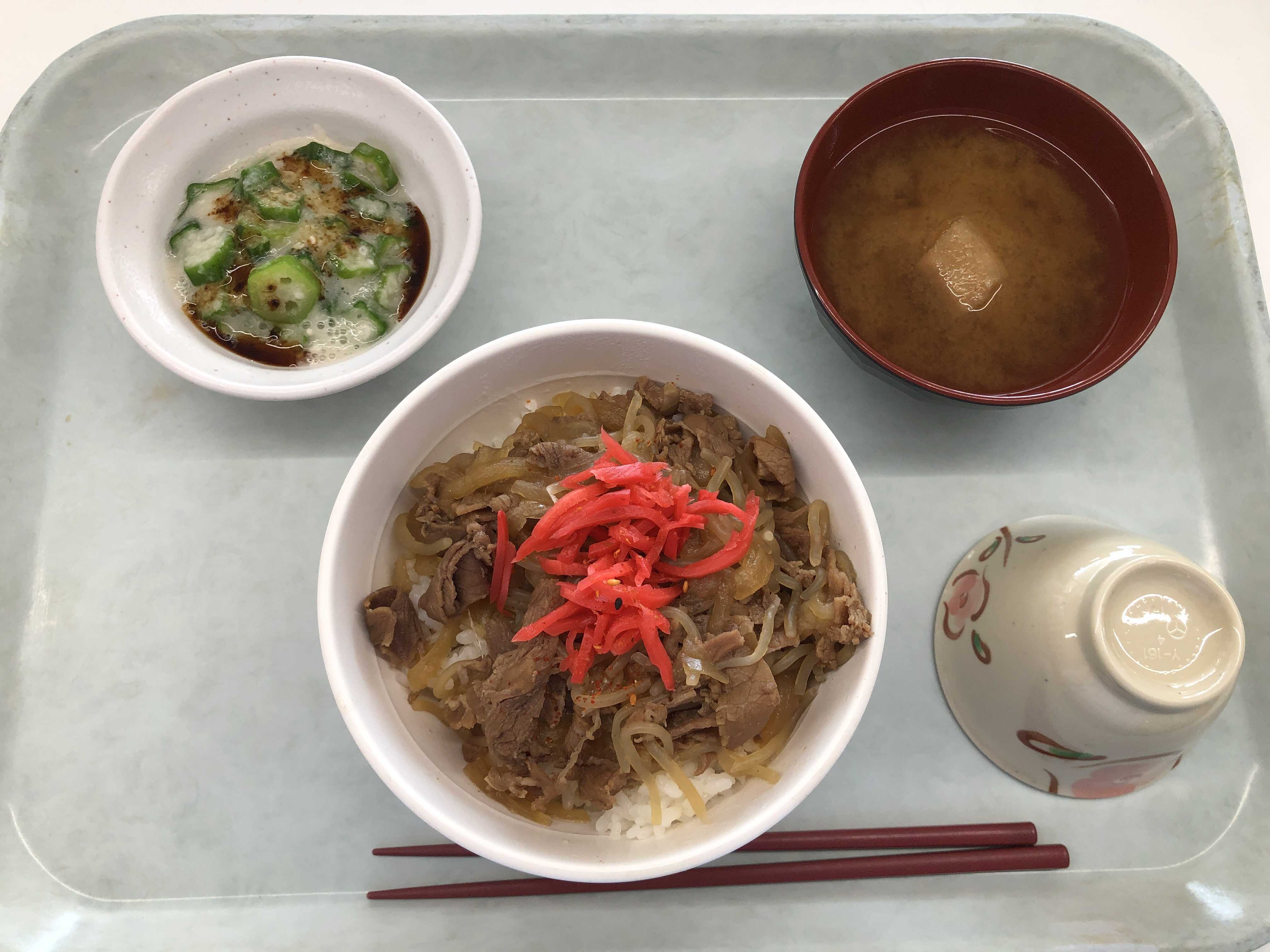 職場の食堂ランチ。毎日4種類の中から予約無く好きなものを選べます。本日、私が選んだのはコチラ!👇🏻・牛丼・オクラととろろ・お味噌汁ご馳走様でした(人 'ч'。)