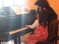 昨年の11月から習い始めたピアノ。最近は少し楽譜を読みながら鍵盤を弾けるようになりましたでもドレミぐらいなんですがねそれと、両手を使い始めました。時々、頭ごちゃごちゃになってます(笑)これはレッスン風景。結構、楽しそうに習っています。先生がとっても優しくてとにかく音楽は楽しくやりましょうっておっしゃってくれて厳しくは教えません。まだ、小さいからかもしれませんけどね。スタジオもとても素敵で、このお部屋にはグランドピアノが2台あります。実はもーたんは先生になのです。先生に抱っこされたり、手をつながれたりするとなんとも言えない嬉しそうな表情に(笑)。4才にして一瞬「女」になってます