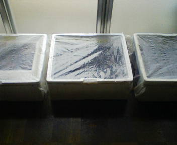 毎年の恒例行事になってしまいましたがこの時期の我が家の2階は、臨時の温室に化けてしまいますと言っても、南窓側に「発砲スチロールの箱」を並べるだけですけどね今は、3箱並んでいます上にビニールを被せて、簡易形の温室ですこの中に種を蒔き、芽だしをします 1箱目1、長茄子----上の2列(10ポット) 2月20日に蒔いた種、やっと双葉が出ました (下半分は、発芽しなかったものです) 発芽率が悪いですね~ 育ち具合は、未だこの程度です 2箱目2、胡瓜----左から縦1、2列、計8ポット 3月5日に種蒔きしましたが、未だ発芽不揃いです 未だ双葉が完全に開いていません でも、胡瓜は育ちが早いから、大丈夫です3、左から3列目(4ポット)同じ5日に、スイートトマトを蒔いたんだが、失敗かもね 未だ、芽が出てきません4、レタス----左から4列目(4ポット) 双葉が開きかけたが、未だ「Yの字」です右端の列は、未だ何も蒔いてありません月末頃に、南瓜か冬瓜でも蒔く予定です 3個目今回、初めて薩摩芋の芽だしに挑戦です芽が出てきたら、畑に移植する予定です3種類、2個づつ仕込みましたさてどうなるでしょうかね~~~~ でわ~