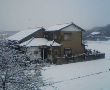 昨晩から降り始めた「雪」今朝、あたり一面が銀世界勿論、今シーズン初の積雪で・・・・5cm豪雪地区から見たら、大した事ではないのでしょうけど 2階から見た、隣家朝9時頃、この頃は未だ降雪真っ最中我が家の庭・・・・柿・ミカンの樹そして、鉢のブルーベリー皆、雪をかぶって寒そう 午後に入って、雪が雨に変わり雪も融けはじめてきました先ほどの隣家、屋根の瓦が半分ほど見えるようになりました明日の朝は、道路も凍って身動き取れないでしょうね家で”じっ”としていますこの寒波、早く通りすぎてほしいものです~皆さんの地区、「雪」はどうでしたか~ ほなぁ~