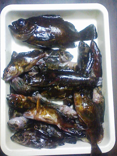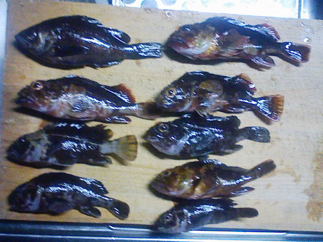 昨晩、行ってきました今年の初釣り夜釣りで、メバル狙いです昨日は、今年に入って潮回り・天候共に最高のコンデション午後4時出発、片道1時間半釣り場までは、折り畳み自転車でさらに15分6時ころから釣り開始先客は5人ほどその中に、先月ここの釣り場でお友達になった「石さん」もいたなんと石さん、今年に入って4回目とかここの釣り場の「主」です様子を聞いてみると”今日もまずまずだね~”とか昨晩は、気温7~8℃無風状態・満潮午後8時20分これで釣れなかったら・・・・午後9時半まで粘りました昨夜の釣果です今シーズン初の「メバル」が釣れましたでも・・・たったの1匹です・・・他には、ソイ・カサゴ等(サイズは:最大で17cm)・・・まぁ~こんなもんですかね~先ほど、仕出し完了しましたまぁ~・・・煮魚位でしょうかね ほなぁ~