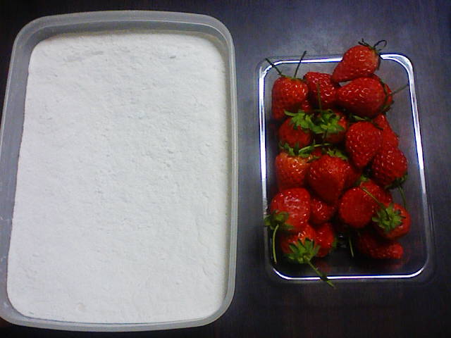 今日は、イチゴ大福作りの手伝いをしました昨年末、釣り友である米屋さんの社長に頼まれ餅つきの手伝いをしました色々頂いたお土産の中に「米粉」もあり何か使い道がないか悩んでいましたがカミさんの提案で「イチゴ大福」を作ることにレシピは これ主役は、米粉・イチゴ・それと餡子も米粉に砂糖&水を入れ、レンジで”チン”出来上がった生地をこれ位の大きさに伸ばし餡子を被せたイチゴを包み込み出来上がりこれだけ作りました早速味見・・・美味~い中は、こんな感じです初めて作りましたが、意外と簡単にできましたよ~ ほなぁ~