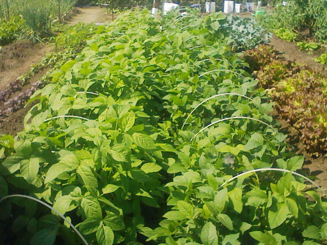 昨日、ジャガイモにも2回目の施肥・土寄せをしました一回目では、畝が凹から平らにそして今回(2回目)は平らから凸に畝高・・・10cm位かな2畝終了うちのジャガイモは、花を咲かせません花を咲かせると、栄養分を花に取られてしまうので・・・今の所病気も無く、元気に推移していますよ~収穫まで・・・このままです ほなぁ~