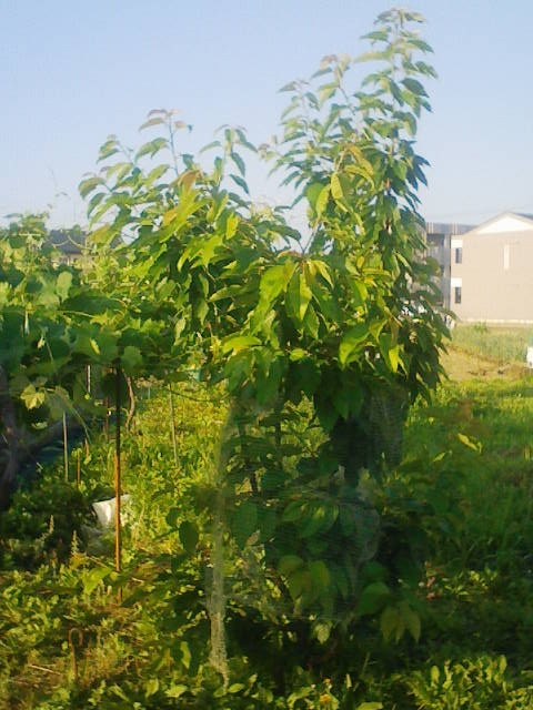 一昨年、窓の下に植え替えした葡萄(ネオマスカット)昨年、2階の窓に到達・・・整枝し今年は、新芽が出揃いました念願の「緑のカーテン」が完成しそうです家の外から、2階東側の中窓を望む下から見上げると枝が沢山出揃っていますこれから整枝し、上に伸ばします2階廊下から、外を見ます未だ葉が隙間だらけだが、何れは・・・カーテンが出来る筈カーテン以外の目的も葡萄の房が付いています収穫時期になれば網戸・カーテンの隙間からこんな風に手を伸ばして・・・房をゲットってな算段です計画倒れにならない様これから色々、手を打って行きます~ ほなぁ~