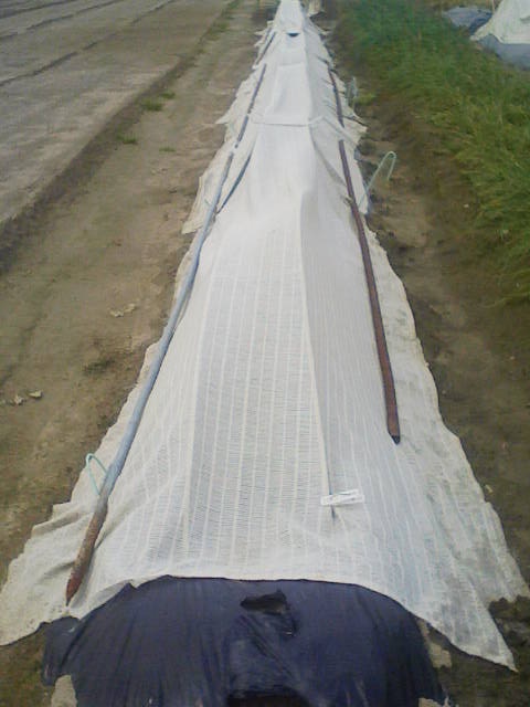 オクラの苗を定植しました今年は、最初の芽出しに失敗2回目となり、少し遅れてしまいましたおまけに、苗も徒長まぁ~、深植えすれば・・・何とかなるだろうと言う事で・・・畝作り・・・畝高10cm位穴掘り・潅水・オルトランを撒き苗を配置植え付け・・・更に潅水風で倒れないよう、不織布を被せました泥はね除けに、少し藁も敷き植え付け終了全部で・・・・12本今年の夏野菜植え付けはこれで全て終了しました~ ほなぁ~