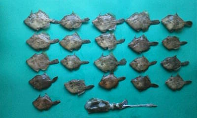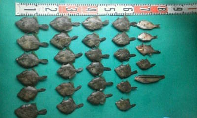 台風一過後、カワハギの様子を見に行って来ました場所は18号が直撃した知多半島(monsanのHG)前回と同じポイントに錨を降ろし7時から実釣開始しかし前回と様子が・・・全く違う群れは薄い、形は小さいポイントを何度も変え、探ってみたが・・・やはり駄目台風の影響は・・・「反」と出ました~仕方なく、気分転換に「アオリ烏賊」に切り替え30分位エギを投げやっと1杯ゲット・・・しかしコロッケサイズやむなく・・・昼で早上がり宿のおばちゃん曰く・・・”台風の大雨で潮が薄まり魚が沖に避難してしまったようだ”・・・らしい次回海の様子が落ち着いた頃又、リベンジだ~今日の釣果です前回に実釣2時間よりも少ない、おまけに小さい(下のアオリ:今シーズン初)数も少ないので・・・料理も簡単全部・・・明日「みりん干し」にします「カワハギ・アオリ」、未だシーズンインしたばかり次回に期待で~す ほなぁ~