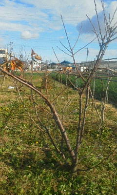 果樹園に、2本のさくらんぼ樹が植えてあります1本は来年1月で3年目背丈が2m位に育ちました昨年は3個、味見程度の収穫でしたしかし、今年はいっぱい花芽が付きました~近くで見ると・・・こんな感じで間違いなし、花芽です2本目は今年1月に植えたばかり「初夏の香」の台木に、「紅香」と「紅きらり」を接木3種類の実が生る優れものです背丈は、未だ1m弱しかしこちら、早くも花芽が先ずは、樹を充実させたいので味見程度に数個を残し、後は摘果するつもりです果樹園のさくらんぼ、充実の気配来年の春が楽しみだ~ ほなぁ~