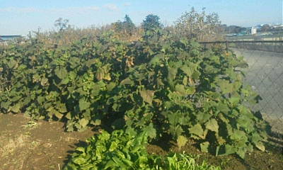 今日はヤーコンにも冬支度をしました冬支度前のヤーコン背丈は「1.6m位」、monsanの背丈と同じ軸を全部切り取り呼吸用に、藁を乗せ保温用に、絨毯を被せ最後に雨除けにのシートを被せましたこの方法は、初めてですが隣町の「セミプロ農家」で昨年実績があり”翌3月頃まで大丈夫”・・・だったとか考えてみると、我家の里芋はこの方法で何度も実績があります今迄に掘った分の「種」も畝の端っこに埋めておきましたさぁ、結果はどうなるか今年は暖冬らしいので、多分大丈夫でしょう ほなぁ~