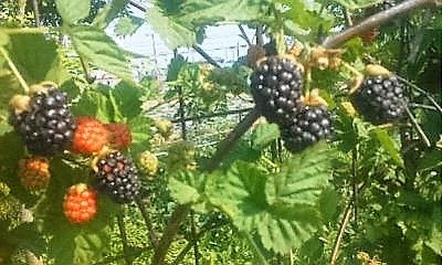 昨日、ブラックベリーを初収穫しました挿し木苗を譲り受け、今年で3年目今年も、果がいっぱい付きました~こんな感じに~粒の大きさはこれ位です真ん中の黒い果が・・採り頃取り合えづ、昨日はこれだけ収穫少し酸味が有りますが、今回はこのままいただきます収穫時期の判別は、この程度の色になった時が最適他の方法は・・触って”ポロっ”と採れたら完熟の証拠です次の収穫分は、ジャムにします真紅のジャム・・美味しいですよ~ ほなぁ~