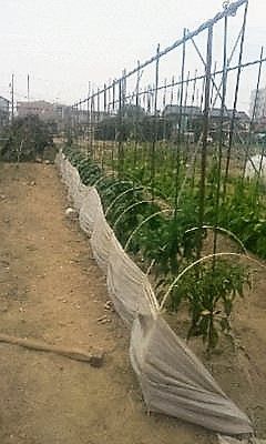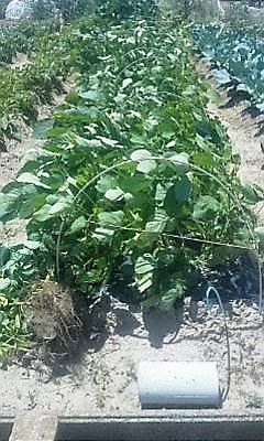昨日はいい雨が降り、久しぶりに畑が潤いました~今日は、2番手の胡瓜苗を植えつけしましたこの時期の胡瓜は成長が早い5月29日種蒔き、3週間強でこの大きさに全部で・・7株昨日降った割には、鍬も難なく使えました1番手胡瓜、延長畝の空きスペースを使い植え付け穴にはオルトランを撒き7株植え付け終了念の為、株元には更に灌水念の為、日除け・風除けの不織布を掛けておきました~3番手胡瓜は未だ考えていないが「地這え胡瓜」でも作ってみようかな ほなぁ~