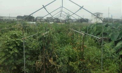 昨日午前中は小雨、午後は雨が止んだのでトマトの撤収作業をしました8月7日、台風5号の時に屋根のビニールは剥がしているので骨組みと蔓が残っています大玉トマト(左畝)は既に終了ミニトマト(右畝)は未だ残っているが、雨で全部破裂・・なので”ポイっ”2畝、全部片づけスッキリしました~後日耕運し、秋冬野菜に備えます ほなぁ~