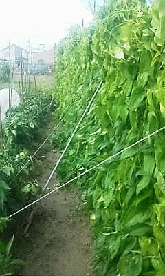 今日は、丹波黒豆に追肥・土寄せ・転倒防止作業を行った既に、不織布は取り除きアーチ形の骨だけが残してありますこれはそのまま、転倒防止に転用します左畝:直播き右畝:今年始めてトライした「挿し木」挿し木は、成長が遅いようだ花が咲き始めていました挿し木の方が沢山蕾があるようだでもまだ、優劣の判定はもう少し先だな少し作業が遅かったが、追肥(少々)そして根元に土寄せをした最後に紐で全部を囲いました全ての骨を支えに活用こんな感じで・・2畝終了です後は虫対策の消毒を、明日辺りにでもしておきますこれで、丹波黒豆は収穫を待つのみ ほなぁ~