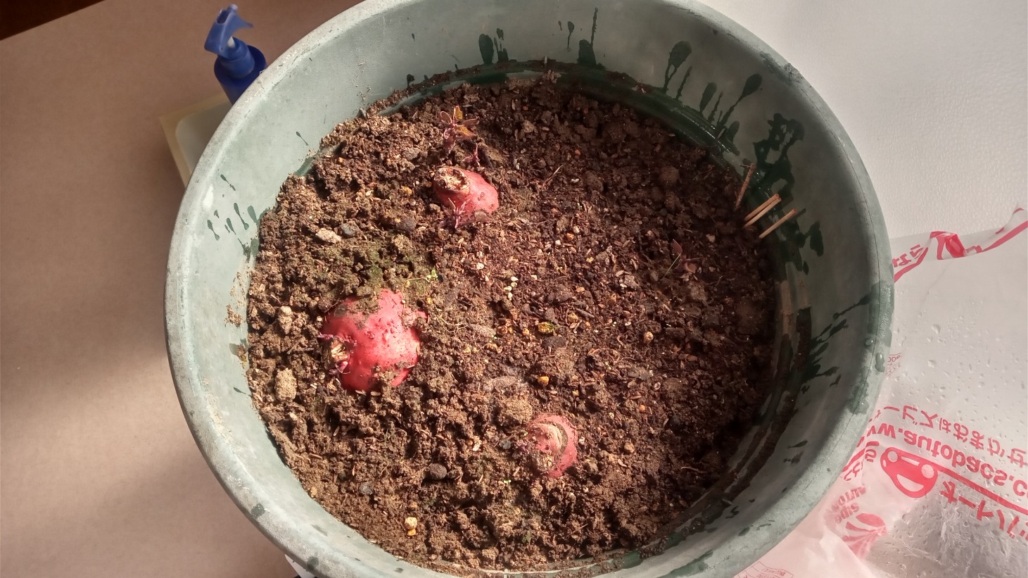 毎年薩摩芋は、シルクスイートの蔓を買っていましたが昨年からは、買う本数を少なくして、家苗も育てています今年も、家苗を育ててみます2階の廊下で芽出しです、発芽したら畑に植え替えする予定・現在の状態 植木鉢に種芋を埋め込みます 一部、芽が出始めましたよ 夜は、ビニールを被せています 寒い日は日中も・・を基本にしていますが完全には出来ていません 失敗したら蔓を買えば済むこと、半分遊びでやってます ほなぁ~