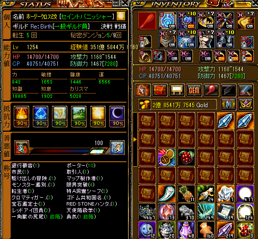 8月3日にキャラ作成して、Lv920くらいまでレベル上げ手伝ってもらって、さっき↓こうなりました。ちゃんと5転して、限界突破4まで取ってあります。驚きのステ・装備は↓こんな感じです。忍耐なんて付いてないので、知識が赤くなるほど低下されていますw見てのとおり、ほぼ全身協会装備です。(セーフは買えなかったのでもらいましたw)こんな状態でも、MOBが範囲スキルを使わないマップだけを通ったので、Lv1251まで上げることができました。金鯖用に課金したのはアウラススフィアのみでロトとかやっていないので、とにかく買い物するお金がなくて大変でしたねぇ。・おまけ変なキャラ名だなって思った人は↑このyoutuberを知らないと思うので、ゲテモノ大丈夫な人は見てみてください。私は、おろちんゆーけっこう好きですw