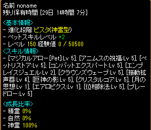 闘士から再振りして霊術になりたての頃は↓こんな感じでした。※たぶんミニPなしの状態だったと思います。そしてスキルレベル高過ぎ問題w次に現在の表記は↓これです。いろいろいじったので、だいぶ上がっていますねw(スキル指→力比指の変更が大きかったと思われる)現在、物理槍から移植したビスタは期限が切れていますし、ダブルドレープ付きのヌウリもいるのですがそれも期限が切れています。姫のレベル上げが終わったら、次は霊術のレベル上げをやるので、そのときにミニPツインを復活させようと思っています。やりたいことがあるうちが華ですね。私の場合、キャラ数が多いのでまだしばらくは大丈夫そうですwでは、また次回の更新でお会いしましょう。
