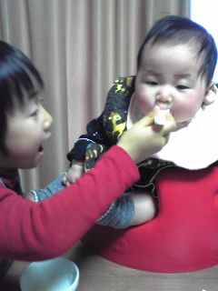 新年一発目のブログは・・・さこサン 初めての離乳食。 元旦で丁度 6ヶ月目を迎え一応何かあるといけないので病院の正月休み中は避けて今日からにしました。二人目子育てののんびりスタートです。 ドロドロのお粥を大さじ1くらい。 もっちがやるやるウルさいの。母乳以外のモノを口にしたのは初めて!・・・と言いたいところですが最初は風邪薬でしたねぇ。。。 薬はゲーって吐き出してたのでお粥も拒否反応が出るかと思ったのですが割とすんなり食べてくれました。 食べ方がわからないなりにもスプーンをチューチュー吸ってみたり何気にお口をモグモグさせていたような。 今週1週間は同じ量のお粥を1日1回 母乳の前に食べさせます。ちょいと大変な離乳食作りのはじまりです。 もっちの時もしたっけね。すり潰したり、削ったり、刻んだり。 でも今回はダンナ様のバナナジュース目的で購入した「マジックブレットデラックス」があるから楽チン。 セットして2秒でドロドロになるのです。バンザイ。 まぁ そんな感じで そこそこお気楽な子育てですがさこサンは順調に育っております。 人見知りが本格的に始まったようで私がいないと泣く事も。まぁ それも成長ですね。 あと、腕を支えてやれば立っちできるくらい足が強いです。 声を出して笑うのは希。基本 にやぁ~ っと笑う程度で、既にクールビューティー(笑) デブっちょも少しおさまってきたかな?お義父さんが「ちょっと痩せてかわいくなった。」と言っておりました。・・・じゃあ前は? ってのは あえて聞きませんが。 あご挨拶が遅れましたが2010年今年もよろしくお願いします。