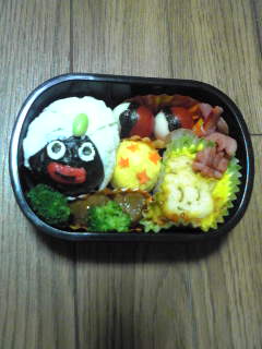 昨日はもっちの遠足で朝からお弁当作りにバタバタしていた。 前日の夜はあーでもないこーでもないとどんなキャラ弁にするか悩みダンナ様に相談して一緒に決めてもらった。 最初作ろうとしてたのはポケモンのピカチュウ。でもダンナ様に「でも 弁当箱がドラゴンボールやのに 中がポケモンって変じゃね? ドラゴンボールの方が喜ぶと思うけど。」と言われた。 ドラゴンボールのキャラ弁を作れと? それ無理じゃね? 確かにもっちにも言われていた。 「悟空の弁当がええなぁ~。」と。「悟空なんて作れるかい! 悪いけど諦めて。」 「ふ~ん じゃあねぇ 悟飯かぁ~ 天津飯かぁ~ ピッコロでもええけど。」 「・・・・・・どれも無理。ごめん。 ! じゃあさ! ピカチュウとかどう?」 「あ~ ええよ~」そんな会話があった。 要はドラゴンボールが一番喜ぶわけだ。 どうしよう・・・。ダンナ様がネットで色々調べてくれた。「悟飯のキャラ弁ならこんなんあるぞ。」「・・・どうやってそんなほそ~く細かく海苔を切るの~(T_T) 」あ~もうどれも無理ってば~!と諦めかけた時「これでええやん。 これならイケる!」決まったキャラクターは Mr. ポポ 地味キャラではあるが一応ドラゴンボールに出てくるキャラである。これなら真っ黒のおにぎりに目と口つけて・・・ 出来たお弁当はコチラ ↓ 朝 もっちに見せた。「これ どう? 何かわかる?」もっちはニヤっとしたあと 「みすたぁぽぽや。」 お~!わかってくれた~!夫婦で盛り上がる。 どうどう?嬉しい? 「うん。うれしい。」やったぁ~!でもイタい所をつかれた。「なんで Mr.ポポなん?」言われてないが 「数あるキャラの中でよりにもよって」とついてる感じ? 「・・・・いや?」 「ううん。ええよ。」 ええ子や もちこ(T_T) ラブ! Mr.ポポ弁を持って楽しい遠足は雨で中止だったが(-"-)園のホールで同じクラスのお友達と仲良く食べたらしい。 もっちが喜んでくれて嬉しいな。いつもみたく 帰りの車の中と寝る前の2回「お弁当 おいしかったヨ。」と言ってくれた。 これがあるから頑張っちゃうんだよな~。母ちゃん海苔を細~く切る技術も身につけようかなぁ(笑) 園にお弁当を持って行くのはこれで最後かな?小学生でもキャラ弁って作るんだろうか。さこが幼稚園に入るまではお休みしたいのだけど。