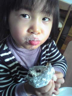 子供たちはブラッティ大福。(生クリームにブラックココアを散りばめたビター&スイ-トなお味)