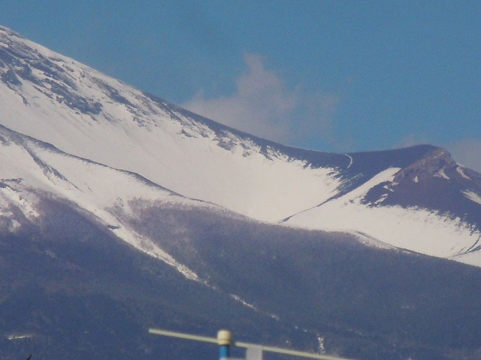 今日の富士山の宝永山の少し左です(中腹の山小屋も積雪がいっぱいです)