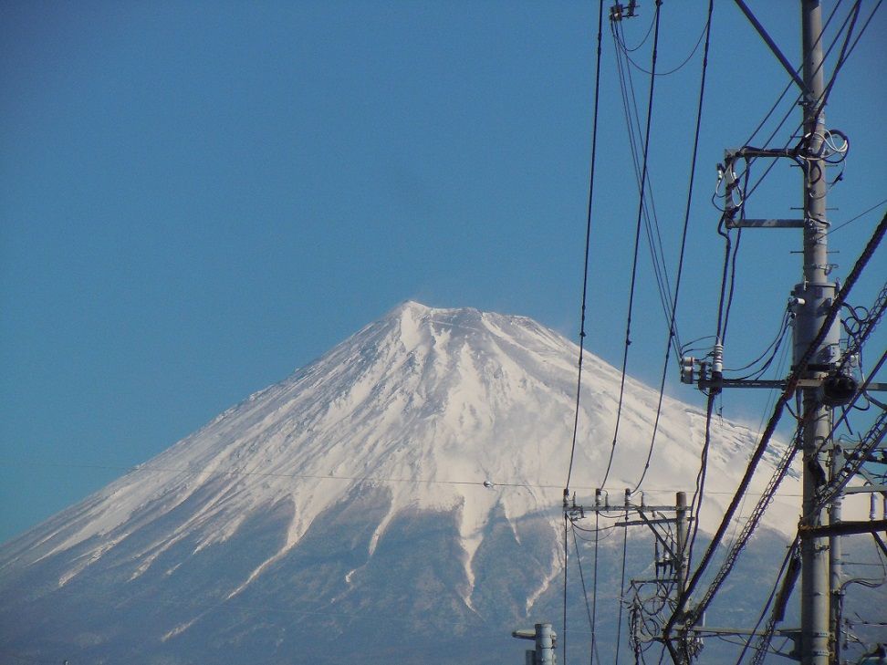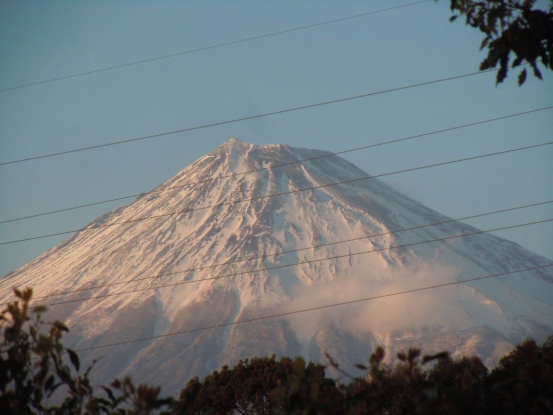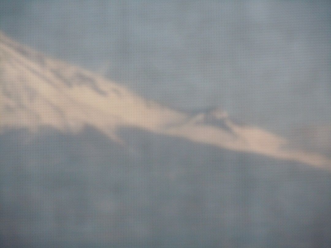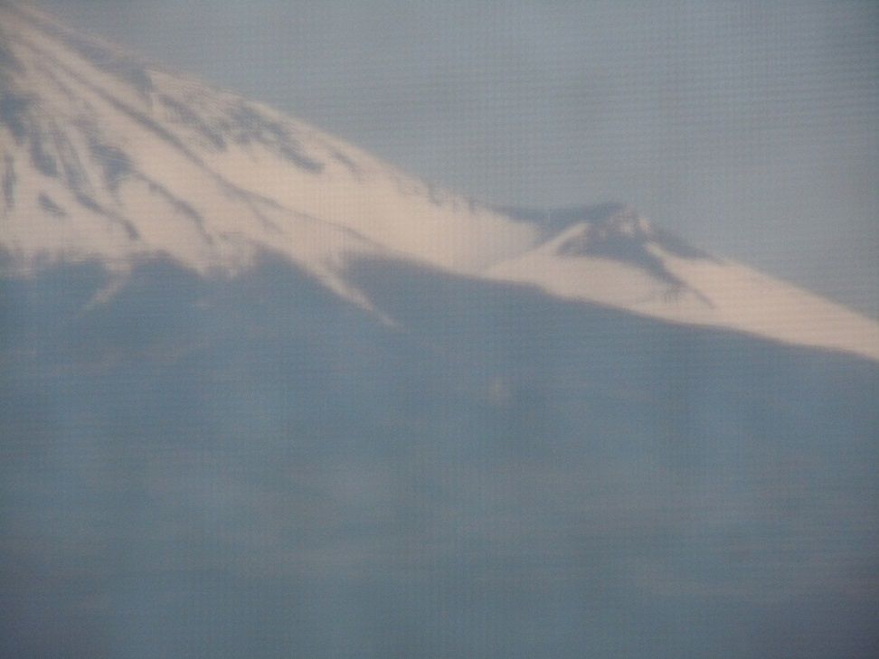 今日の富士山の山頂です(積雪が山肌に薄く積もってベールのようです)(このベールは風と熱ですぐにはがされてしまいます)