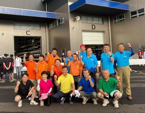 今年は何とか挽回をと早朝5時からの練習を3回実施して当日を迎えました。朝起きたら雨が降っていましたが、ボートは風がなければ決行とのことで漕艇場に。
