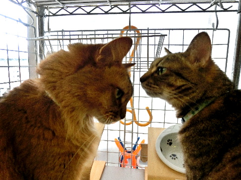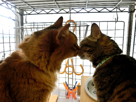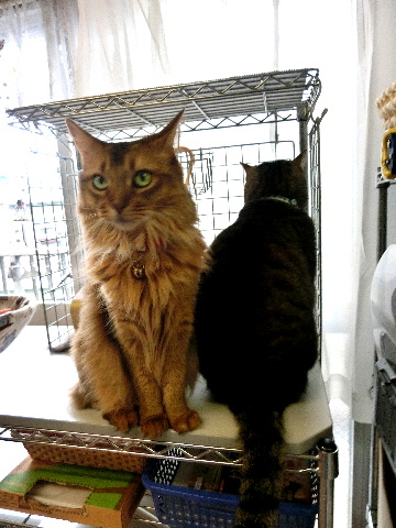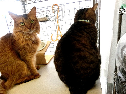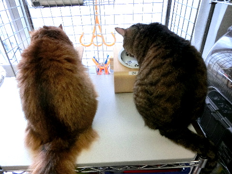 やっとこ、乾いたころに、両方揃ってご飯の催促です。