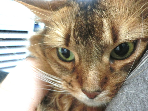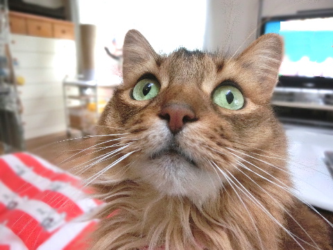 カメラを近づけられて、避けようとあちこち顔を向けてますが(^_^;A