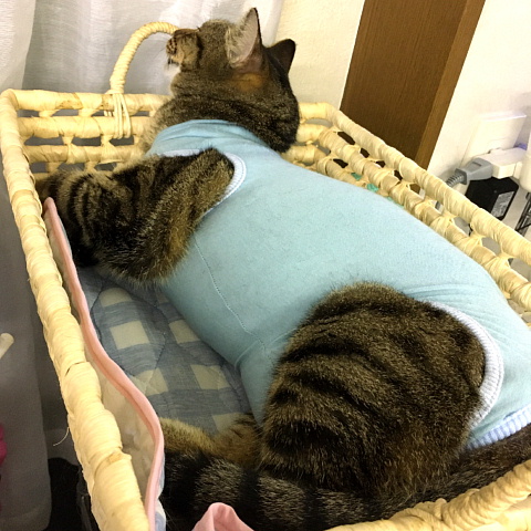 塗り薬をつけてレオタードを着せてたときの写真です。