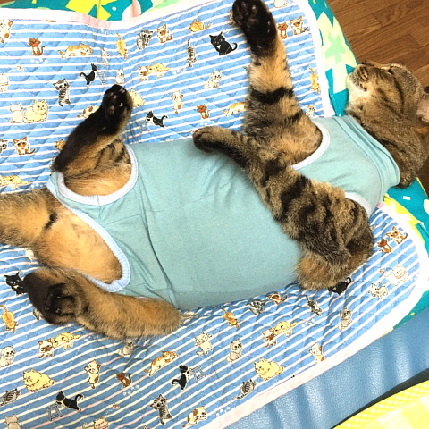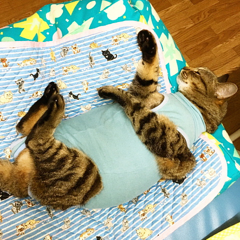 レオタード ビーズクッション でへそ天している「ゆき」です。
